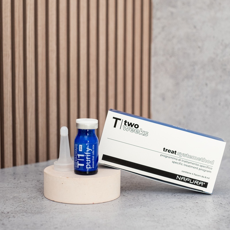T1 Purify Post — ампульный пост-детокс для кожи головы, завершающий этап глубокого очищения, выводит токсины и запускает лимфодренаж, восстанавливая комфорт и эластичность. Благодаря комплексу Zinc PCA, эфирным маслам эвкалипта, розмарина, можжевельника и экстрактам березы, центеллы, гамамелиса, крамерии и крапивы средство нормализует себум, тонизирует микроциркуляцию и создает условия для здорового роста волос. Результат — свежие легкие корни, сбалансированная кожа и ощутимо более «живые» волосы; идеально после T1 Purify Pre или как интенсивный курс для жирной/комбинированной кожи головы.