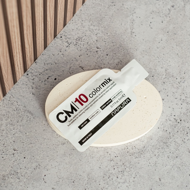 Добавьте пакет CM10 Color на каждые 60 мл красителя и хорошо перемешайте. Добавьте эквивалентное количество перекиси водорода, перемешайте еще раз, а затем продолжайте нанесение красителя. Используйте частоту при каждой покраске. CM10 Color можно использовать как отдельный продукт, или, для еще лучшего результата, его можно сочетать с другими продуктами коллекции 10 Color, следуя следующей последовательности в их применении: Шаг 1> M10 Color Pre - Маска спрей перед окрашиванием волос, аминокислоты для заполнения пробелов структуры волос Шаг 2> CM10 - Протектор, защита кожи головы во время окрашивания волос Шаг 3> S10 - Шампунь для окрашенных волос, поддержание и стабилизация цвета Шаг 4> C10 - Кондиционер для поддержания и стабилизация цвета волос