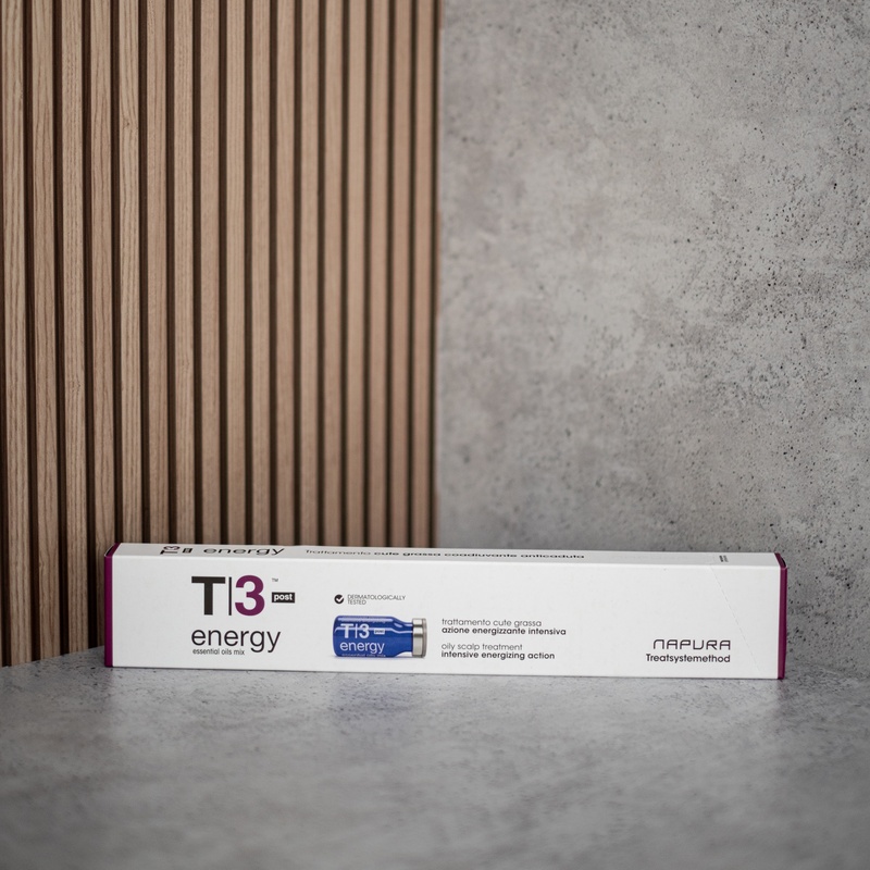 После мытья головы встряхните и нанесите T3 Energy Post непосредственно на кожу головы, мягко массируя. Оставьте на несколько минут, затем высушите. Избегайте контакта с глазами и слизистыми. Используйте частоту 2 раза в неделю. T3 Energy Post можно использовать как отдельный продукт, или, для еще лучшего результата, его можно сочетать с другими продуктами коллекции 3 Energy, следуя следующей последовательности в их применении: Шаг 2> S3 Energy - Шампунь против выпадения волос для жирной кожи головы Шаг 3> D3 Energy - Ежедневный лосьон против выпадения волос для жирной кожи головы . Шаг 4> T3 Energy Post – сыворотка против выпадения волос при жирной коже головы после шампуня T3 energy post применять как один продукт 2 раза в неделю или с D3 Energy в дни, когда вы не используете последний.