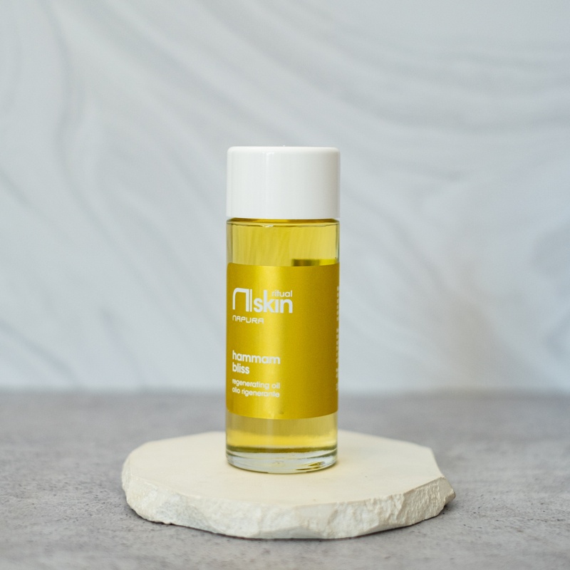 После очищения тела гелем Hammam Touch нанесите несколько капель Hammam Bliss на влажную или сухую кожу, мягко массируя до полного впитывания. Масло глубоко питает, делает кожу эластичной и дарит ей естественное сияние. Для более насыщенного сенсорного опыта нанесите масло на сухую кожу перед душем, затем смойте теплой водой. Такой ритуал сохраняет увлажнение и обеспечивает нежность и шелковистость кожи на целый день.
